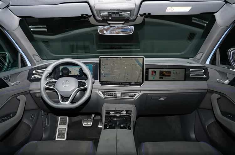 内饰方面,途昂Pro的座舱设计注重数字化体验,配备了双液晶大屏,包括一个15英寸的中控屏和一个11.6英寸的副驾驶娱乐屏幕4。此外,还提供了环绕式音响、座椅按摩和多功能独立空调等高端配置。