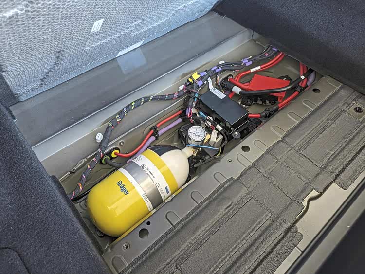 其他特殊功能也可通过显示屏幕访问,例如在主电池的电力无法启动发动机时可激活备用电池。点击“空气”(Air)按钮可在发生毒气袭击时提供帮助:车内会产生超压,将已经进入车内的毒气排出,然后通风口关闭,储存在行李厢底部的氧气瓶可释放出供人们呼吸的空气,可持续约五分钟。如果燃烧瓶在车底引发爆炸怎么办?红色灭火器标志会激活车底和发动机舱的灭火系统。由于也可能发生爆炸,因此宝马防弹车配备了钢制弹簧,其承受力远远超过标准车型的空气悬挂。因此,虽然X5的离地间隙足以应付大多数越野地形,但是它也缺乏悬挂高度调节的功能。