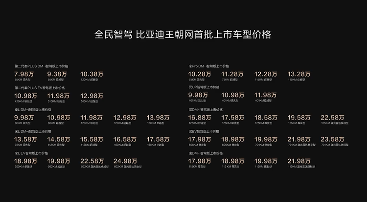 今晚最大的问题应该是没讲清楚天神ABC的区别,一个劲全归类到高阶智驾,100TOPS算力平台的三目视觉方案也归纳到高阶智驾,消费者听完还以为全系激光雷达了,但问题不是,尽管比亚迪全系基本拥有了高速NOA能力,但消费者认知的高阶智驾是高速+城市NOA都具备,所以还是会造成巨大的沟通成本和消费者一丢丢被欺骗的感觉。