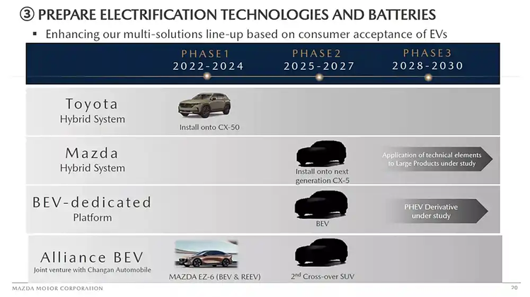 年还没过完,比亚迪就把高阶智驾就打到7万级,各家车企还在绞尽脑汁打智驾战的时候,马自达还在忙活发动机。没错,从海外媒体发布了马自达全新车型规划来看,马自达计划今年将推出一款全新SUV,依旧基于长安EPA平台生产,2027年推出全新Skyactiv-Z发动机,并首搭在全新一代CX-5发布。而招牌的转子发动机将在北美市场复活,预计将作为增程器使用,不会直接驱动车辆。