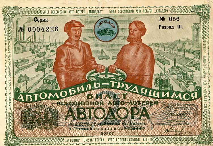 售价30戈比的"Автодор"彩票,承载着工人阶级的机械梦。