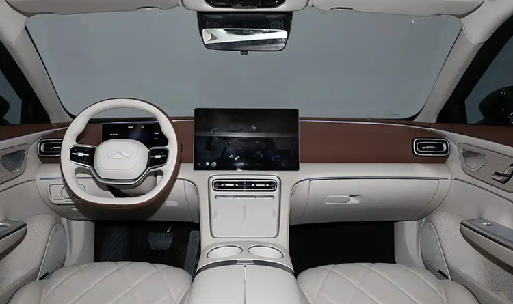 风云A9内饰采用“5纵3横”一体化座舱设计,以白色与棕粉色双拼配色为主调,搭配15.6英寸悬浮式中控屏、双辐式方向盘及全液晶仪表,营造出简约而不失科技感的氛围。配置方面,零重力座椅、23枚扬声器、智能香氛系统、主动降噪等高端配置一应俱全,同时全车配备10气囊+远端气囊,安全性达到同级领先水平。