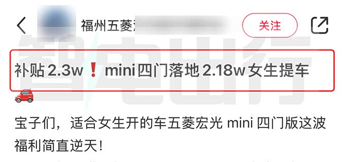 五菱官方:宏光MINI EV四门版9天后上市!销售:2.18万落地