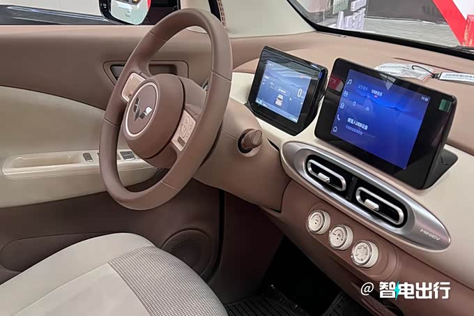宏光MINIEV四门版采用7英寸彩色仪表+8英寸悬浮中控屏,配备多功能方向盘,智能钥匙支持无感启动和靠近解锁尾门等。车内采用贯通式主副驾中央通道,升级电子手刹,带高清倒车影像+后倒车雷达。