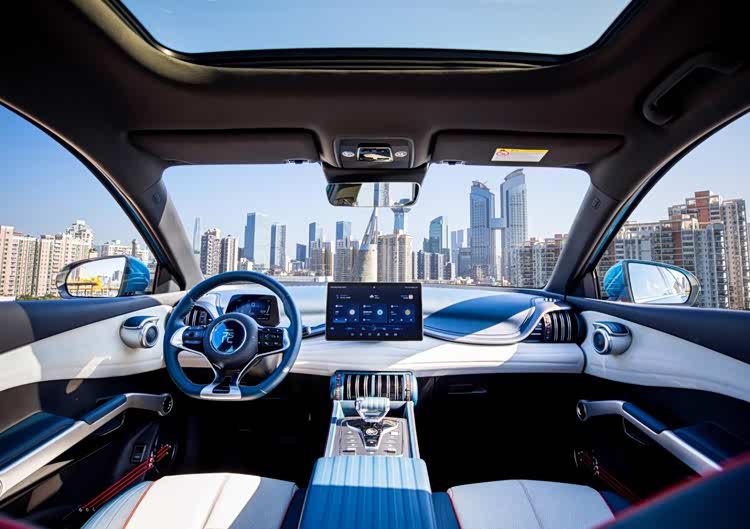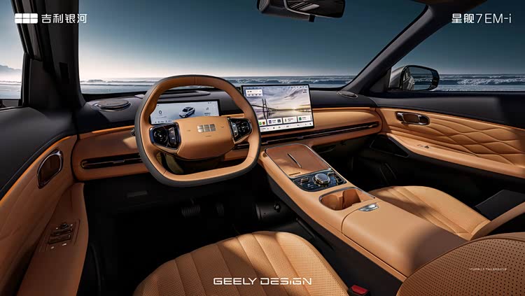 银河E5配备10.2英寸液晶仪表和15.4英寸悬浮式中控屏,内置Flyme Auto车机系统,并配备国产首颗车规级7nm车机芯片龍鹰一号,车机系统可在500毫秒内对用户的连续语音指令做出反馈,并可实现高频场景免唤醒、领悟模糊指令、持续交互对话、离线对话、全场景可见即可说等功能。另外还提供256色车内氛围灯,顶配车型座椅提供腿托调节、通风/加热/按摩,并可选装头枕扬声器。