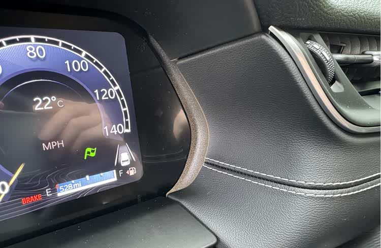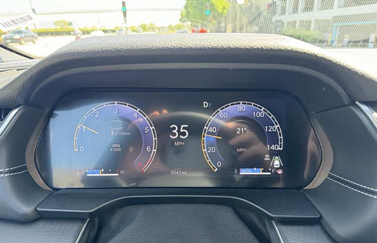 仪表盘是一块黑色方块屏幕,很好地隐藏了屏幕与屏幕背板。背板两侧有类似通风口的设计,白色灯作掩饰,但背板状态警示灯出现了光源与面板镂空对不上的问题。仪表盘UI同样颇为原始,可选项目不少但风格基本相同,没有太多自定义空间。信息显示非常混乱,内容无分区字体大小无逻辑。显示警示信息时仪表会突然变小,无渐入渐出功能,存有大量留白空间,四种不同显示模式差别不大,没有太大的必要性。