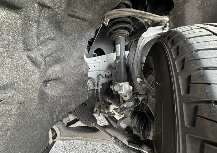 轮距上大切在Giorgio平台基础上增加了65mm,但保留了双叉臂前悬、下方解耦双连杆、主销虚拟下支点、两横臂球销上接以及铝制前轴塔顶、水箱框架这些平台件。后轴设计偏向载重,大切需要两种不同尺比的后减速器,因此副车架和车轮架尺寸非常可观,无法与Stelvio通用。硬点变化是从四连杆换型成五连杆,多了一个X向转矩控制杆,车轮架和弹簧连杆铸铝件,其余均为喷漆铁冲压件。