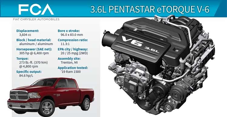 2019年FCA给使用这台发动机的RAM车型加装了48V BSG电机,便是解决低速动力不足的问题。