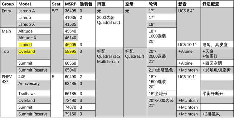 别忘了,这个车型级别的消费者更在意的是售价和经济性。这使得Jeep面临车型布局难度加大、不得不将主力设置到中低配车型中。