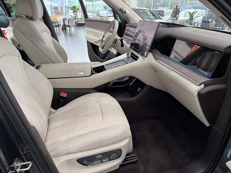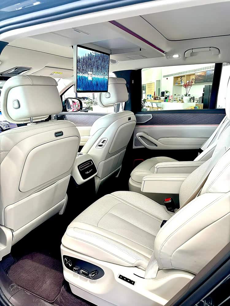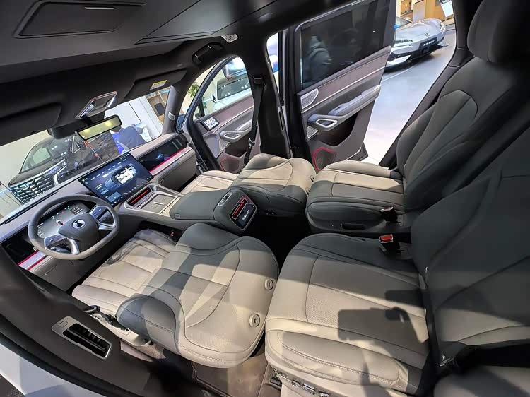 在座椅的布局设计上,腾势N9采纳了一个2+2+2的六座配置方案。前排的主座椅配备了主动侧翼功能,而副驾驶座椅则配备了电动腿托,并且提供了通风、加热和按摩等多种便利设施。双独立座椅不仅具备电动调节和加热/通风/按摩的功能,还与后排的折叠小桌板、17.3英寸的吸顶娱乐屏、车载冰箱、双50W手机无线充电、全景天幕、遮阳帘和26扬帝瓦雷音响等高级配置相结合,为乘客提供了极佳的乘坐体验。第三排的座椅不仅配备了电动调节和加热功能,而且第一排和第二排座椅的靠背都可以向后折叠。特别需要强调的是,第三排座椅的设计让乘客能够完全平躺,这极大地提升了空间布局的灵活性。