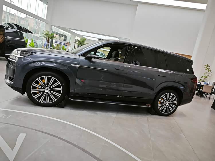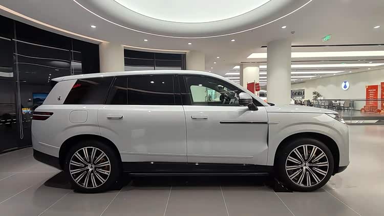 这辆车的设计线条既流畅又充满力量,其庞大的车身与其丰满的外观完美结合,呈现出无与伦比的吸引力。轮拱的设计深入骨髓,展现出令人震撼的肌肉张力。车辆的前端车门特别融入了进气口的设计元素,与22英寸的紧凑轮毂、黄色的刹车卡钳、悬浮式车顶和电动侧踏板等设计元素相结合,实现了豪华与运动的完美融合。另外,电吸门的设置也增强了车辆的便利性和高级感,只需按下刹车就可以自动关闭。