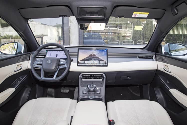 秦PLUS DM-i智驾版入门级配备的是10.1英寸旋转中控屏+8.8英寸仪表(其余两个配置中控屏升级为12.8英寸),搭载的DiLink车载智能系统功能也很全面。