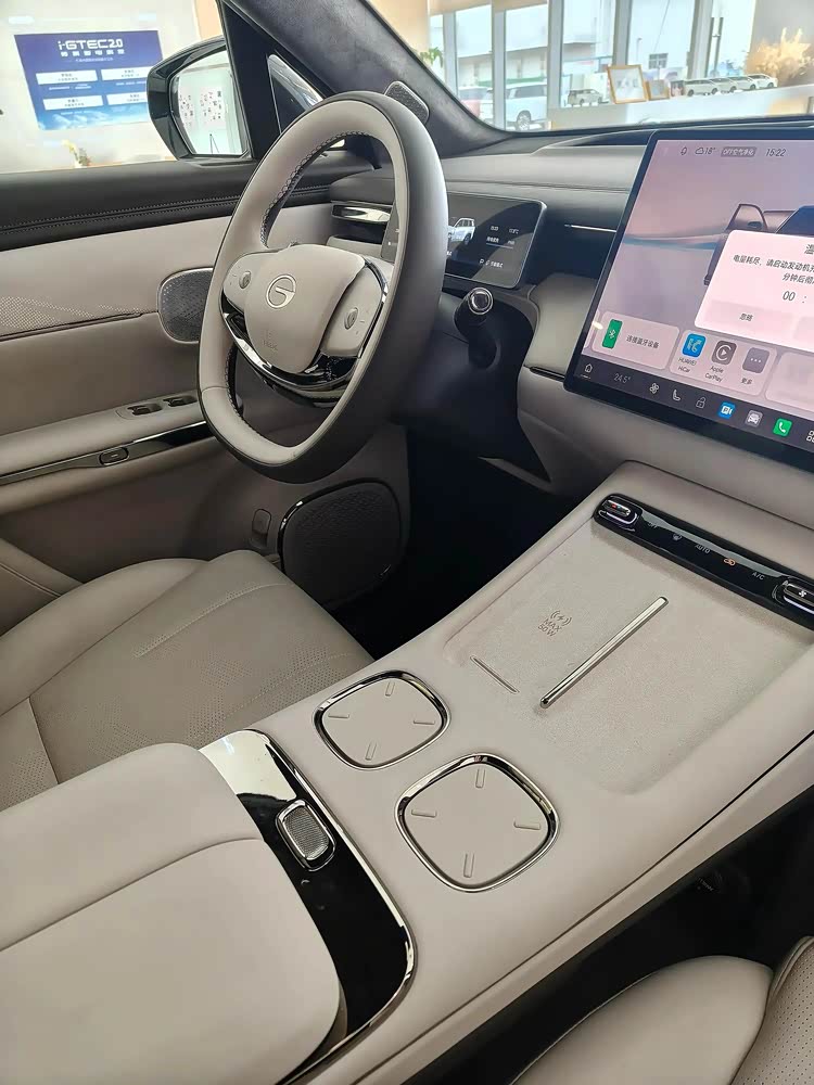 传祺S7在内部装饰的材料选择上非常讲究,它采用了白棕色调,并结合了NAPPA真皮、超柔水润皮和麂皮等多种不同的材料,以创造出一种奢华的触感。日照金山音响系统集成了多种先进设备,包括升降音箱和金属拉丝面罩等,还配备了氛围灯、双幅多功能方向盘、电子怀挡和50W无线快充,共同打造了一个豪华而舒适的驾驶和乘坐体验空间。