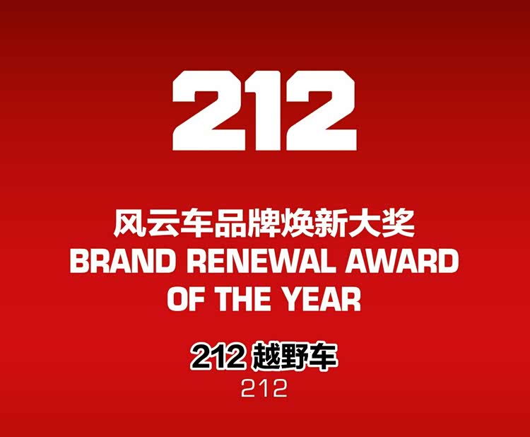 作为传承60余年荣耀历史的中国越野车,212见证了新中国的发展历程,是几代人对于越野车的共同记忆,是中国越野车领域的超级符号。2024年是唤醒记忆的一年,212成功从一款车到一个品牌,是全球唯一一个以纯数字命名的汽车品牌。