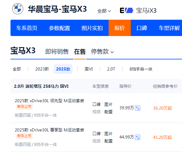 随着汽车市场的不断更新迭代,各大品牌纷纷推出新款车型以吸引消费者的目光。宝马作为豪华品牌的代表之一,其SUV系列中的X3一直是中型豪华SUV市场的热门车型。近期,2025款全新一代宝马 X3 正式上市。在新X3正式上市的同时,仍有很多的消费者将目光投向了老款X3。那么,在宝马新X3上市后,老款X3是否更具性价比呢?