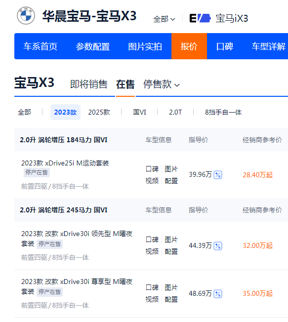 随着新X3的上市,经销商为了清理库存,通常会对老款X3进行大幅度降价促销。目前,部分地区的老款X3终端优惠甚至更多。这意味着原本指导价接近40万元的入门版车型,现在可能仅需30万元出头即可入手。这样的价格无疑让老款X3的性价比提升。