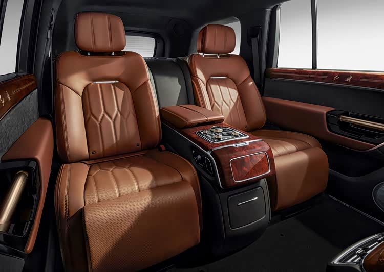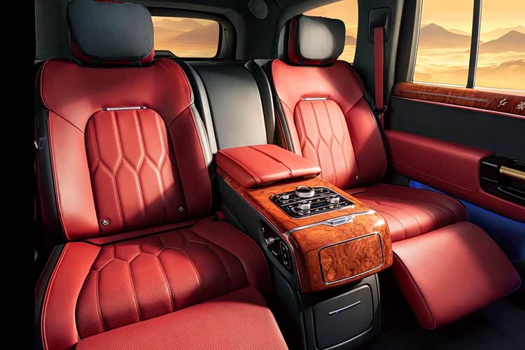 得益于车身尺寸上的优势,在乘坐空间上,红旗金葵花国耀完胜揽胜盛世加长版。红旗金葵花国耀第二排腿部达到了1160mm的纵向空间和头部1002mm的竖向空间,要比揽胜盛世加长版的950mm纵向腿部空间和930mm的头部竖向空间多出近20%。这样宽阔的乘坐空间配合着丰富的座椅配置让乘坐在红旗金葵花国耀上尽享奢华。
