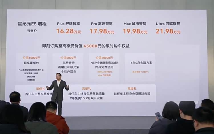 果不其然,2月18日星纪元ES增程版车型开启预售后,直接给出了一个16.28万起的预售价格区间,那这还是非常有诚意的。而且这价格出来后,也就意味着,新车正式上市时的价格只会低不会高,因此这难道还不能说是“大卖稳了”吗?我觉得,新车最终的售价可能会在15.98万甚至是更低的15.28万元左右,不信大家可以拭目以待。