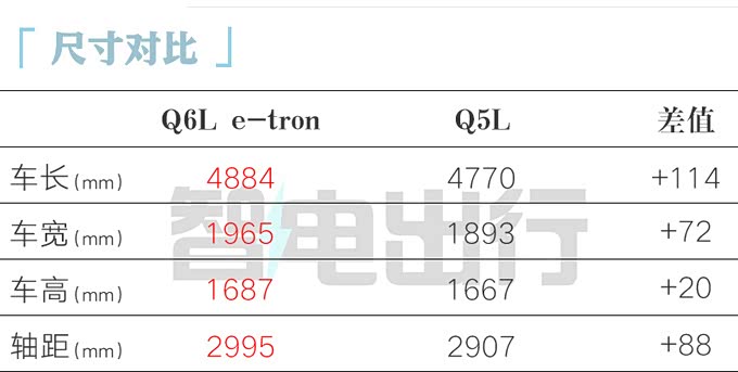 Q6L e-tron基于PPE豪华纯电动平台打造,车长、轴距分别在海外版基础上加长11.3厘米、9.6厘米,首次搭载华为智驾方案。