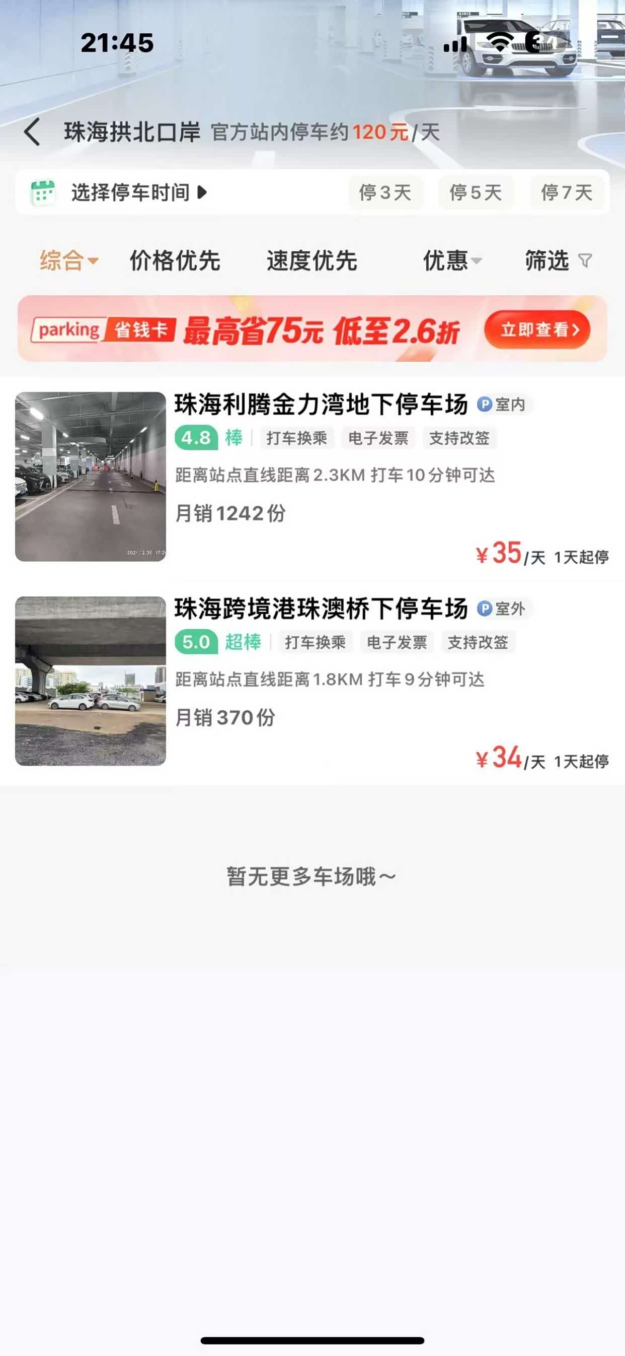 在这种情况下,自驾前往拱北口岸无疑成为了一个更为明智的选择。自驾能够一次性解决换乘和行李携带的问题,让车主们更加轻松自在地前往口岸。然而,口岸官方的停车场收费标准却让人咋舌,24小时的费用竟然高达120元,这对于很多车主来说,无疑是一笔沉重的负担。幸运的是,车主们并不必为此过于担忧。拱北口岸周边存在着许多更为经济实惠的停车选择。可以通过【小强停车】查看机场周边的停车场,车主们就能直接预约到口岸附近的停车场车位,价格低至34元/天,且输入邀请码88,还可领取38元停车券,相比官方停车场,这无疑是一个巨大的优惠。