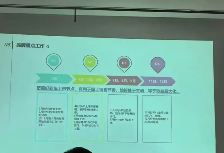 从时间规划上看,鸿蒙智行的新车发布节奏紧凑有序。一季度,新款问界M9将于3月率先上市,而尊界S800则计划在2月底至3月间开启小订,为市场预热。进入二季度,4月份上海车展上,问界M8将惊艳亮相,同时享界S9增程版也将正式上市。5月,尊界S800和问界M8将携手进入市场,其中尊界S800还将在6月开启交付,问界M8也将紧随其后。三季度,新款问界M7将在8月下旬开启小订,9月中旬正式上市。而四季度,全尺寸豪华SUV智界R9将亮相市场,为鸿蒙智行的2025年画上圆满句号,同时发布2026年的全新规划。