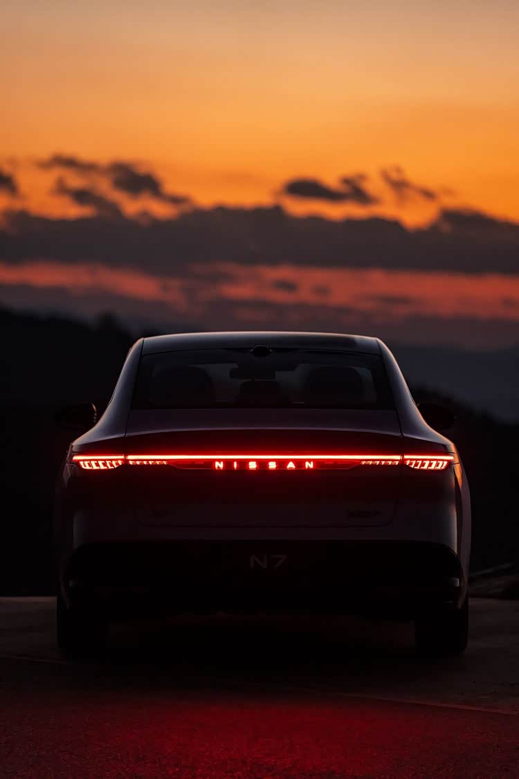 N7 的尾部设计同样独具匠心。贯穿式尾灯与车头相互呼应,大大增加了车辆的辨识度。灯组内部斜线式光源与日产英文车标精妙组合,让人过目难忘。全车配备 710 颗高功率 LED 灯珠和 882 个 OLED 发光单元,组成了自定义灯语交互系统。你可以根据心情和喜好设置专属的灯光效果,和朋友聚会时,用独特的灯语打个招呼;在特殊节日里,以绚烂的灯光秀表达喜悦之情。每一次出行,N7 都能成为你个性的独特表达。