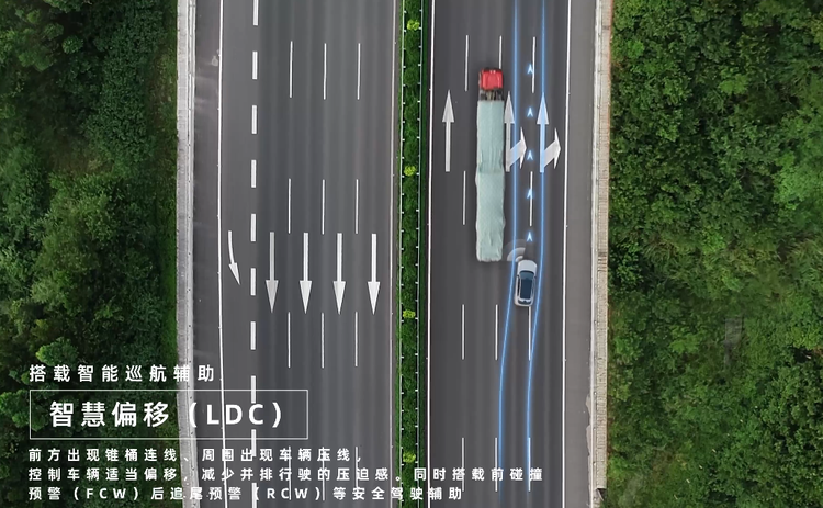 智慧偏移LDC:前方出现车辆压线时,控制车辆适当偏移,减少并排行驶的压迫感。