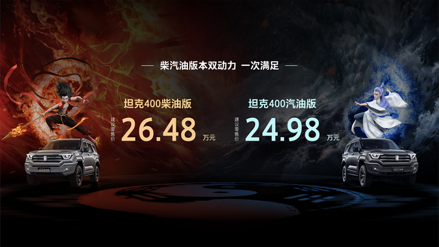 总之,坦克400汽/柴油版车型的上市,除了价格下探,还能给越野玩家多一份动力形式的选择,如果你想买一款硬派越野,不妨看看坦克400汽/柴油版车型,没准它就是你的菜。