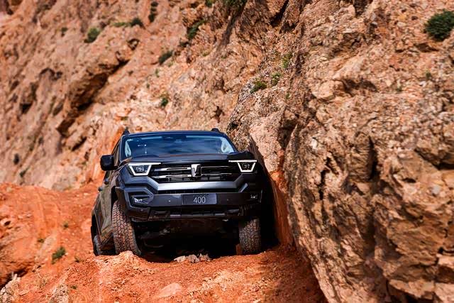 坦克400汽/柴油版车型的机械四驱系统采用带传动轴的非解耦设计,配合三把锁,即使单轮着地也能保证整车动力的100%输出。坦克4L模式下,分动器将扭矩放大2.64倍,在攀爬复杂工况的陡坡时,可持续低速大扭矩的输出。越野参数方面,接近角33°、离去角31°、纵向通过角22.5°,最小离地间隙235mm,最大涉水深度800mm,走一些比较难的越野路段也能轻松通过。