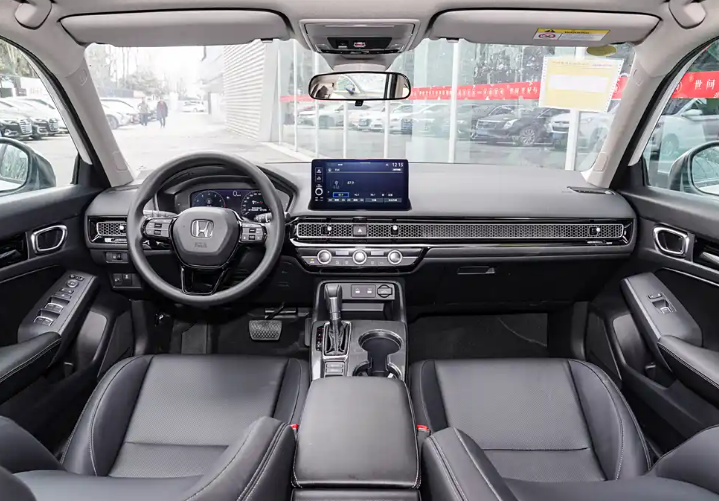 接下来,咱们看看内饰。新款思域的内饰整体变化不大,依旧是本田家族化的设计风格,简洁实用。新车搭载了Honda Connect 4.0智导互联系统,支持无线CarPlay、百度地图等功能,这在日常使用中会非常方便。此外,新车还新增了USB Type-C接口和后排出风口,这些小细节的提升确实能提升用车体验。不过,新款思域取消了备胎,这一点可能会让一些消费者感到不满,毕竟备胎在长途出行时还是很有用的。