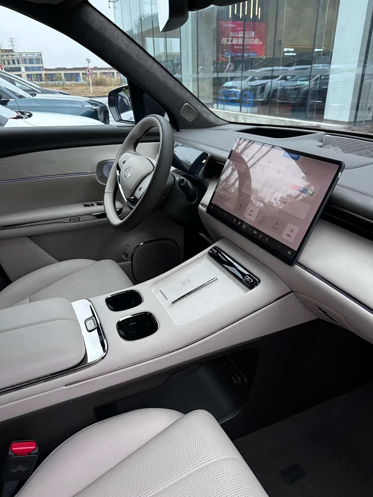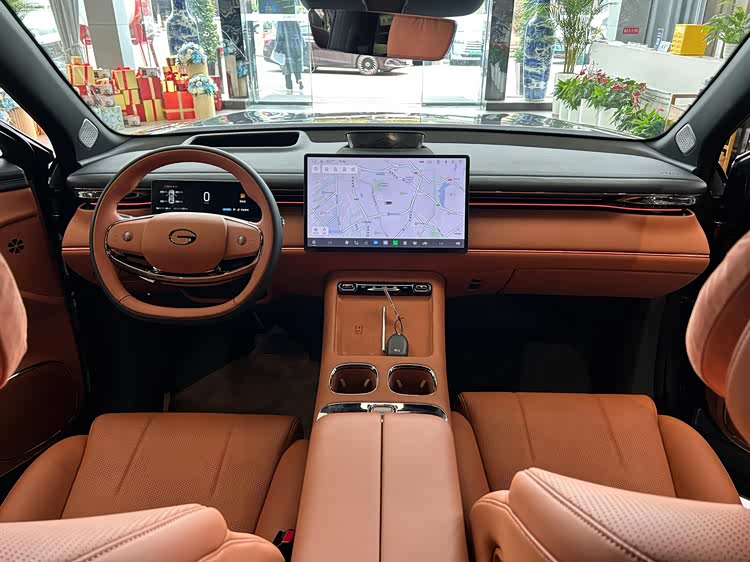 内饰也有棕色、白色、黑色多种风格,加之大量NAPPA真皮、超柔水润皮、麂皮包覆,再配合日照金山升降音箱、氛围灯等,显得很有豪华气息。而双幅式多功能方向盘+电子怀挡、50W手机无线充电的加持,也进一步提升了档次感。15.6英寸悬浮式中控屏配合8.8英寸全液晶仪表屏,以及27英寸W-HUD抬头显示,又营造出科技氛围,并搭载高通8295芯片加持的ADiGO 6.0车机系统。