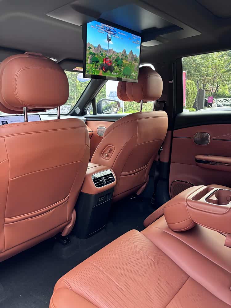 车内采用大五座布局,全车四座椅均支持电动调节、通风/加热/按摩等功能,同时,后排右侧座椅还将配备电动腿托,加之137°靠背调节,实现“零重力”坐姿,再配合17.3英寸吸顶娱乐屏、后排中央扶手、全景天幕+遮阳帘、隔音/隐私玻璃、22扬杜比全景声音响等,乘坐舒适性不言而喻。另外,后排座椅放倒后还能拓展出2050L后备厢空间,而后备厢下方空间还可选装20L车载冰箱。