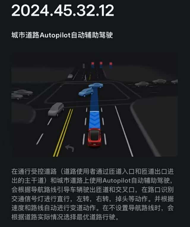 这次特斯拉自动辅助驾驶主要更新的内容是针对城市内智能辅助驾驶,比如说路口识别交通信号进行直行、掉头、右转、左转等,根据路况自动变道和调节速度,选择最优路线行驶等等,看起来这些和华为智驾差不多,但是实际测试中,确实也有一些情况还是有差异。