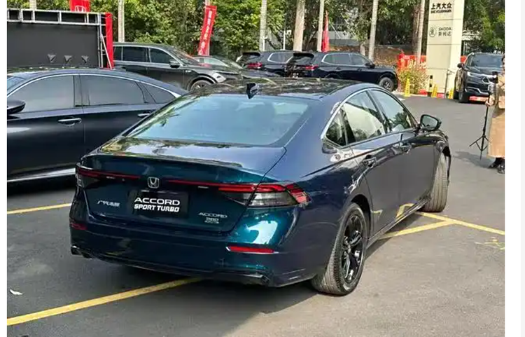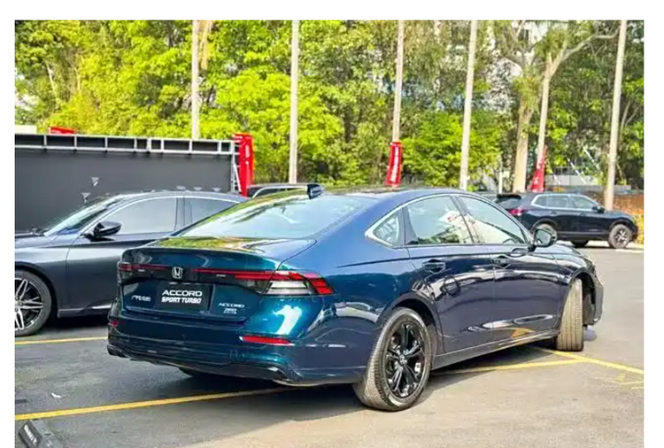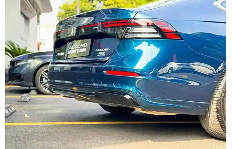 车辆的尾部设计同样令人瞩目,特别是其细长的尾灯组,由多条灯带和矩形光源组合而成,一旦这些灯被点亮,其识别能力便会显著提升。尾灯的中心部分的标志尺寸进行了扩展,这使得它更加吸引人们的目光。新款雅阁的后包围设计经过精心调整,成为了引人注目的焦点。通过加入熏黑仿排气口和尾灯上方的小鸭尾设计,尾部呈现出更加动感十足的视觉效果,充分体现了新款雅阁的运动特性。