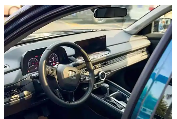 新推出的雅阁车型在进入车内之后,仍然沿用了原有的设计思路,但在设计的具体细节上进行了一系列的改进和提升。10.2英寸的全液晶显示屏和12.3英寸的中控显示屏的悬浮设计依然吸引人们的目光,而位于主驾驶前方的11.5英寸HUD抬头显示进一步提升了驾驶的便捷性和安全性。贯穿式空调的出风口装饰采用了蜂窝状的设计元素,这使得车内的装潢显得更加时尚,也充满了科技的氛围。