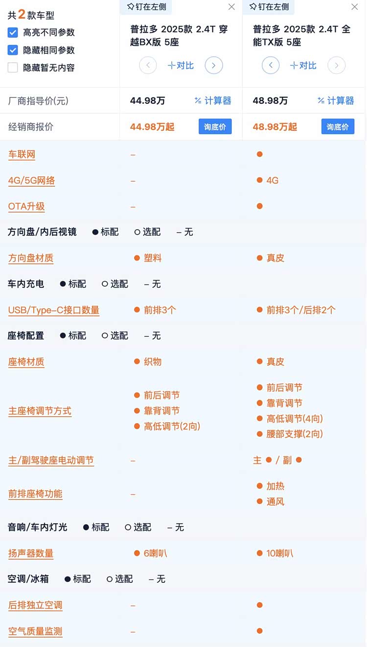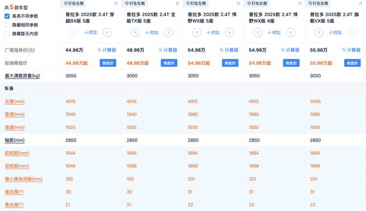 如果只是想拥有一台普拉多,选择入门版价格更低;而如果有更高的需求,就可以选更高阶的配置,那我们的推荐顺序如下: