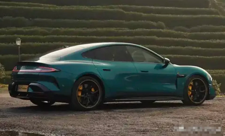 从公开展示的实车照片中,我们可以看到小米SU7 Ultra采用了一种创新的墨绿色车漆,车顶装配了激光雷达、黑色轮辋和黄色刹车卡钳,而在其他设计方面,它与之前的版本保持了一致性。