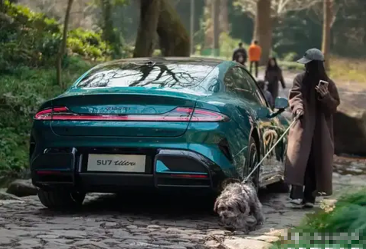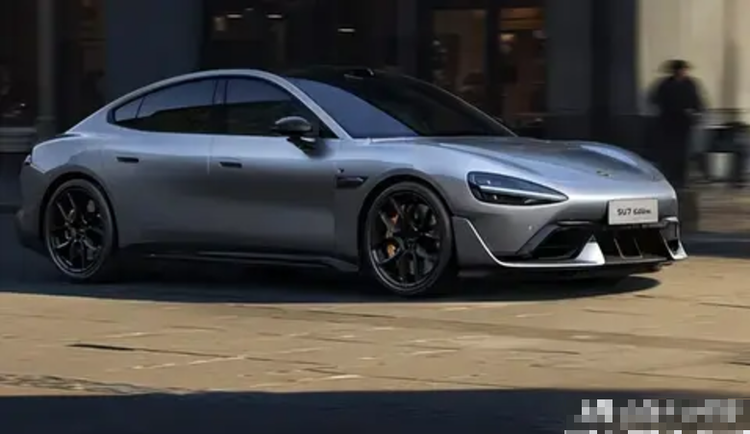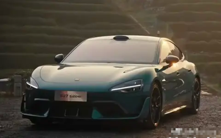 详细阐述了小米SU7 Ultra的设计特点,它在前包围的两侧都配备了与车身颜色匹配的U形风刀,并在前包围的中心位置安装了前铲和菱形网状进风口。除了这些,小米SU7 Ultra对其前车标和大灯进行了黑化处理,并在前机舱盖和后备厢盖的中心区域添加了银色涂装,同时还配备了金色的车标。