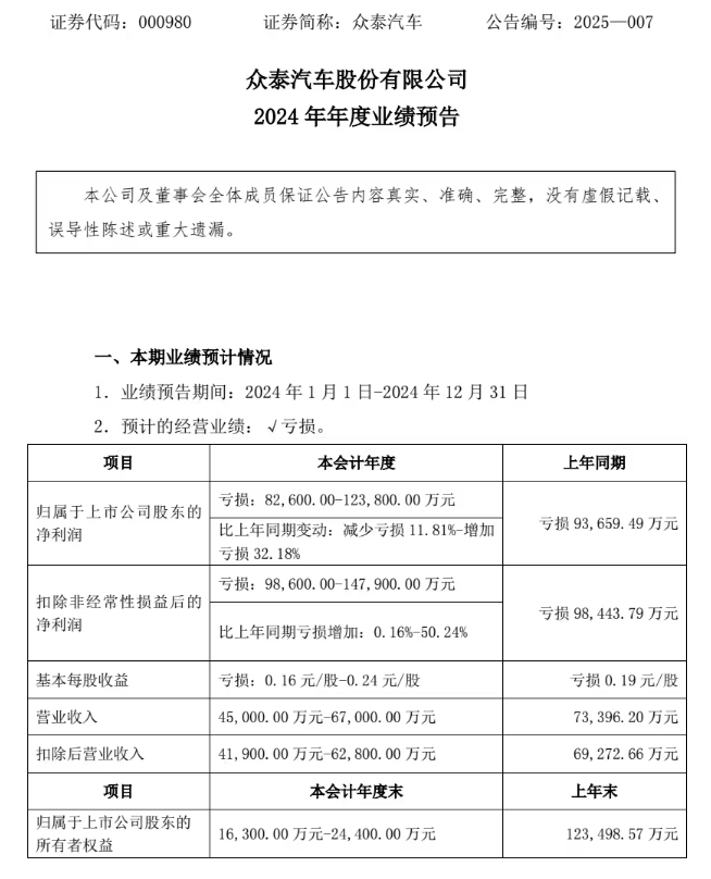 在其此前发布的2024年年度业绩预告中,“亏损”二字尤其显眼!
