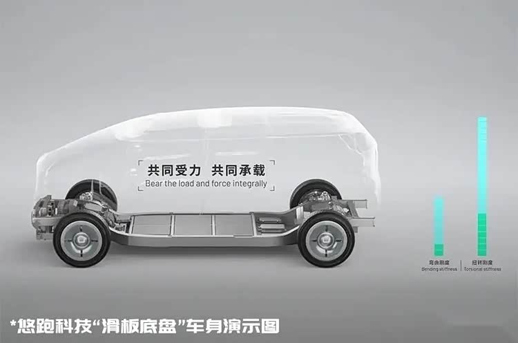 而“滑板底盘”也并非仅是非承载式车身的升级版,它具有更为多样化的特点。比如Rivian旗下的车款在车壳与底盘处依然采用了传统的柔性连接方式。但刚刚提到的悠跑科技则是将上下车体通过焊接、铆接等刚性连接方式进行连接,让车身和底盘形成一个整体,共同承载了整台车,以此来提升整车的弯曲刚度和扭转刚度,属于半承载式车身结构。总之,所谓的“滑板底盘”概念应具有高集成度、高智能化以及多样的兼容性与互换性。
