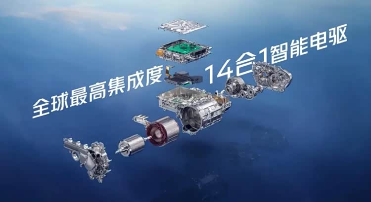 第一,拥有全球首款14合1智能电驱:集成多核芯片,响应速度达1/10000秒,比特斯拉后驱电驱体积缩小20%,电机转速高达25100rpm,兼顾性能与空间效率。