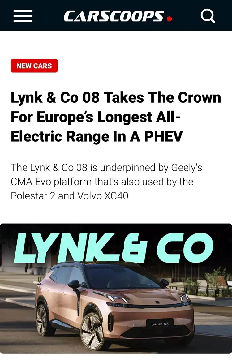 欧洲媒体对于领克08 EM-P也给予了关注。