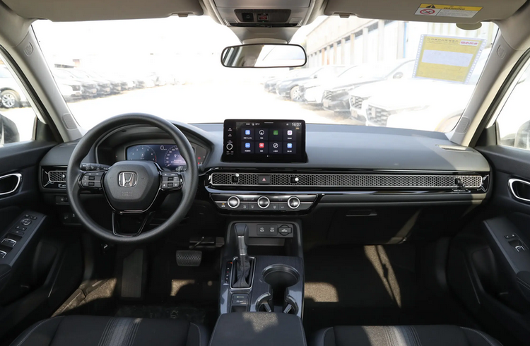 下面我们进入到思域车内来看,10.2英寸全液晶仪表盘的显示比较清晰,而且,它能依据不同驾驶模式变换显示风格,增添驾驶乐趣。9英寸(部分高配车型)悬浮式中控屏搭载全新Honda Connect互联系统,支持手机互联,系统操作流畅,界面设计简洁,菜单层级合理,新手也能快速上手。内饰材质方面,座椅采用皮织混搭,触感柔软,包裹性好,加上出色的人体工程学设计,长时间驾驶也不易疲惫。中控台大面积软性搪塑材质搭配钢琴烤漆与镀铬装饰条,车门内饰板常接触区域也用软性材质,提升了整体质感。不过,部分低配车型的方向盘、换挡杆周边塑料感重,拉低了内饰档次。