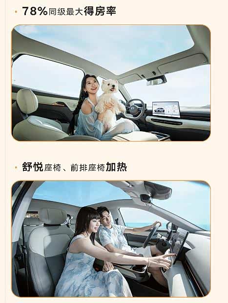 悦意03的车内采用了对称式环抱设计,车内拥有着78%同级最大的空间利用率,前排15mm厚的软泡层舒悦座椅还配备了加热以及主驾通风功能。