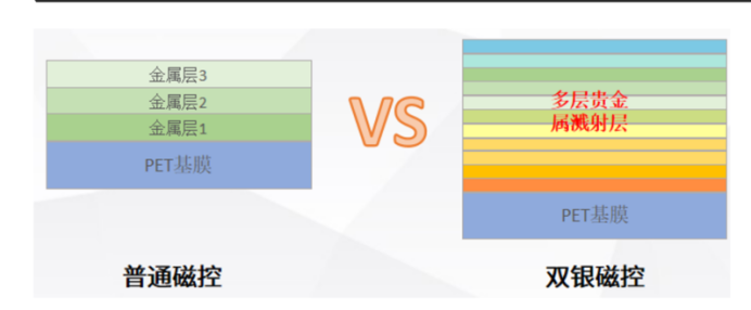 传统真空蒸发工艺金属分布不均、仅能镀制单层,导致隔热性能衰减快、信号干扰大;而格莱弗的磁控溅射技术通过电场与磁场原理高速度、高力量地将镍、银、氧化锆等材料以原子级精度均匀溅射至PET基材,形成致密且可控的多层复合膜结构。适配5G时代用户需求。