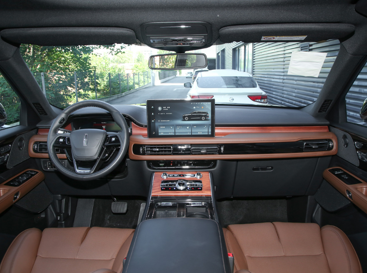 坐进林肯飞行家的前排,我们能够感觉到明显的美系豪华感,车内应用分层式的台面造型,并配备了木纹装饰板、皮革包覆材料、烤漆面板等材质,让座舱内看起来具备明显的层次感。中控台的中间位置能够看到一块12.8英寸的悬浮式多媒体屏幕,内置SYNC+车载智能系统,能够保障日常用车中基础的智能交互体验。