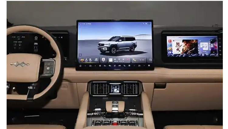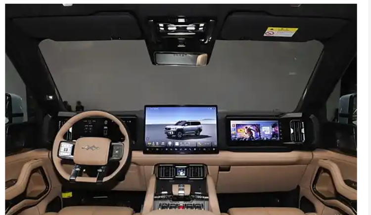 内饰方面,方程豹豹8无人机版延续了在售车型的内饰布局方案,中控台区域搭载了四幅式平底方向盘、50英寸AR-HUD抬头显示系统、12.3英寸液晶仪表、17.3英寸悬浮式中控屏和12.3英寸副驾娱乐屏等高科技配置。同时,新车还提供了野麦黄、暗夜黑和新增的雪峰白三种内饰配色方案,满足了消费者对个性化的追求。