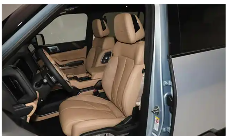 座椅方面,方程豹豹8无人机版提供6座和7座两种版本车型,座椅均使用Nappa真皮材质进行包裹,并标配了前排/第二排/第三排座椅电动调节、前排座椅加热/通风/记忆/按摩等功能,为乘客提供了舒适的乘坐体验。