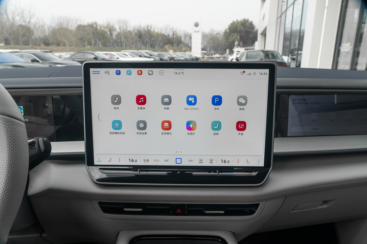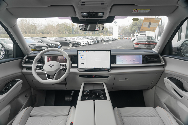 进入车内,途昂Pro的内饰设计同样令人眼前一亮。中控台搭载了液晶仪表、悬浮式中控屏以及副驾驶娱乐屏,同时配备HUD数字抬头显示功能。通过MOS 3.0 GP智慧车联系统,新车可实现六屏联动,科技感相较于现款车型有了显著提升。主副驾驶前方的液晶屏采用嵌入式设计,与两侧空调出风口连接在一起,形成贯穿式布局,使得中控台更加整洁美观。