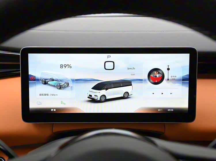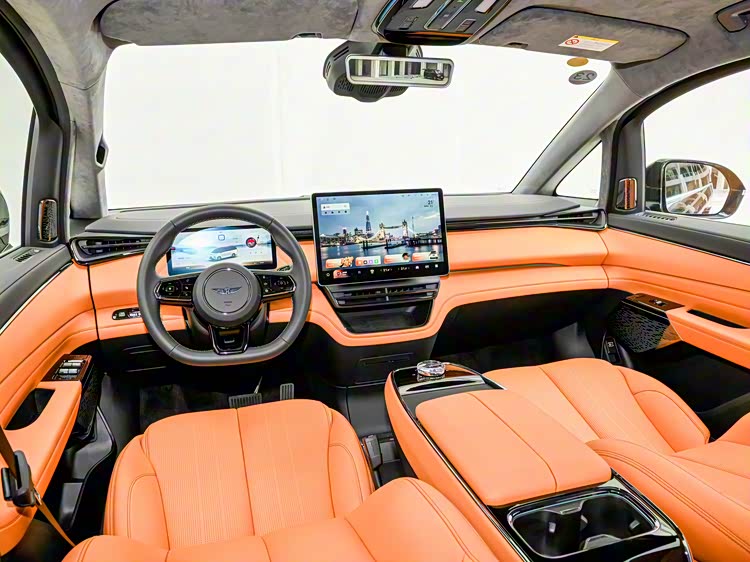 科技配置,便捷智能:配备三辐式多功能方向盘、10.25 英寸矩形液晶仪表盘、15.4 英寸悬浮式中控屏、怀挡式换挡结构以及 19.8 英寸 AR-HUD 抬头显示系统等,功能控制大多集成在中控屏幕内,实体按键较少,操作界面简洁又不失格调。